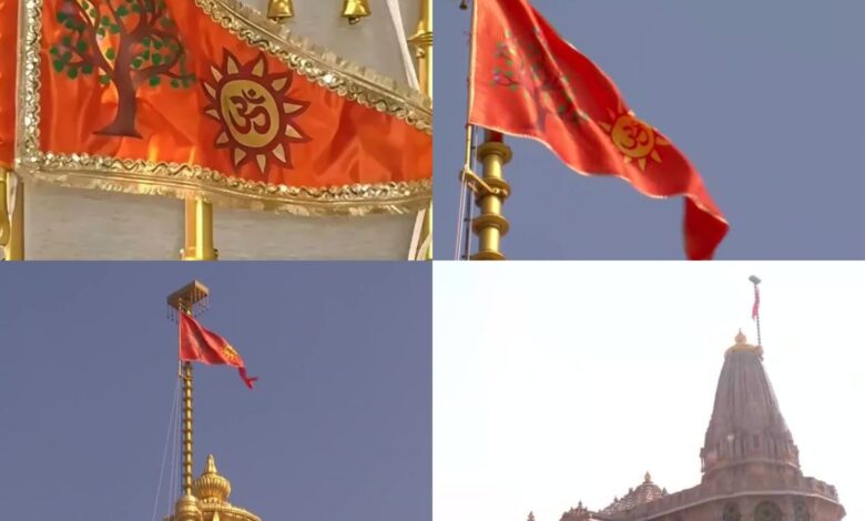 અમદાવાદની કારીગરીથી સુસજ્જ ૨૨ ફૂટની ધજા, કલ્પવૃક્ષ-સૂર્ય-ઓમનું પ્રતીક બની લહેરાઈ
